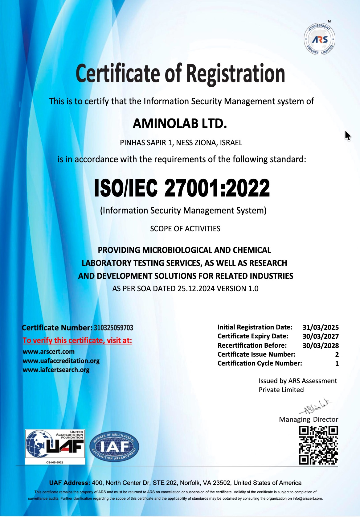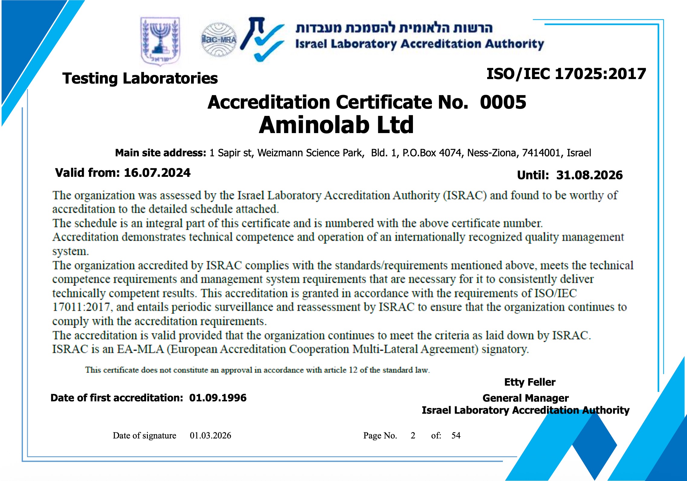 The accreditation and recognition that we’ve gained over the years is our priceless pedigree: Aminolab, its managers and employees have earned a place at the forefront of scientific testing and support.